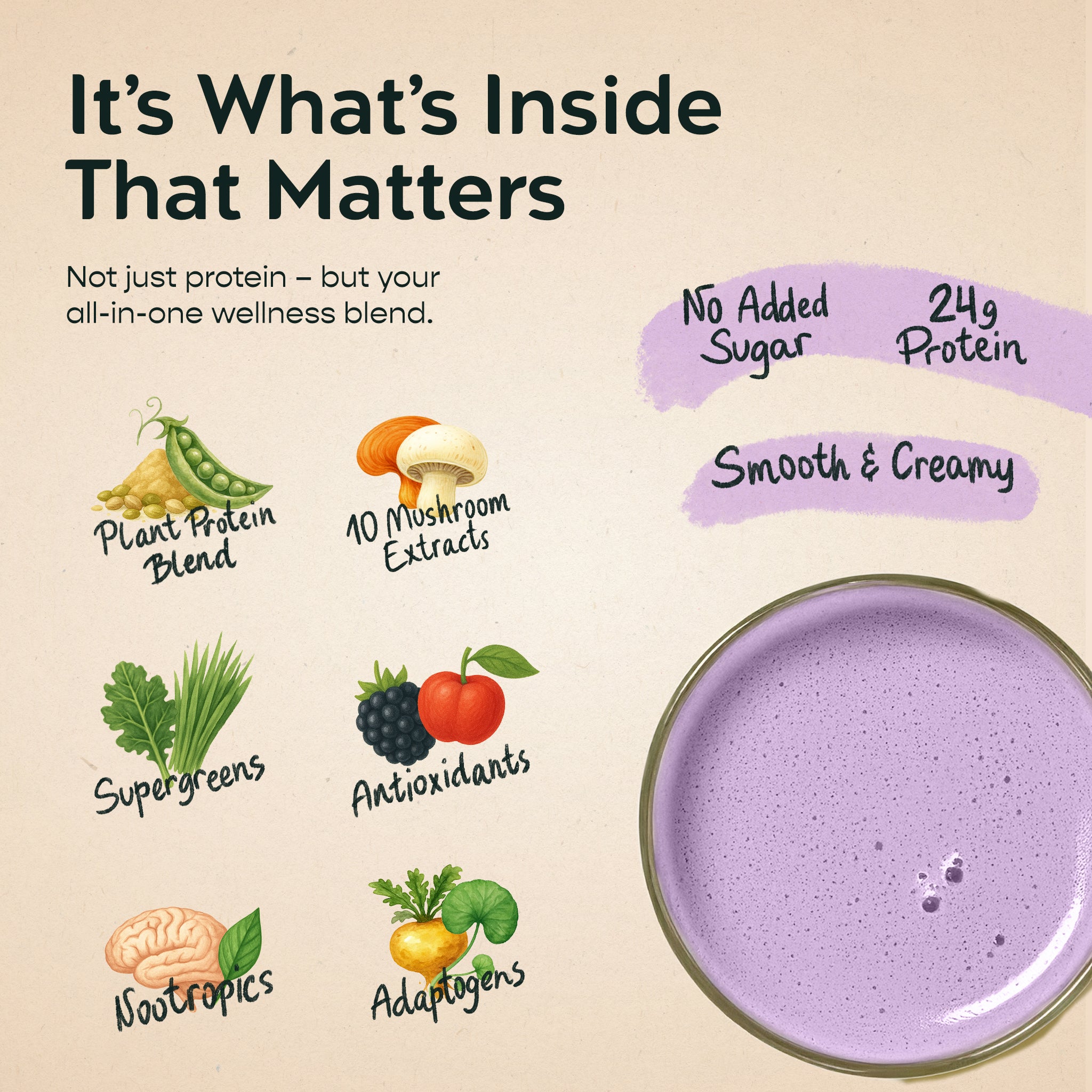 Protein with purpose. Flavor with calm. All plant-based.