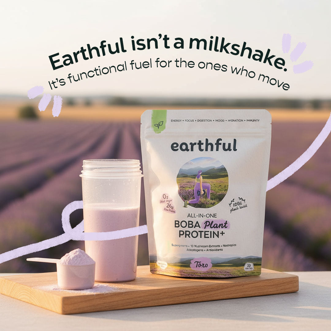 THE FIRST ALL-IN-ONE BOBA PLANT PROTEIN – Earthful is the world’s first boba-inspired vegan protein powder, combining authentic taro boba flavor with complete daily nutrition for energy, focus, recovery, and wellness.