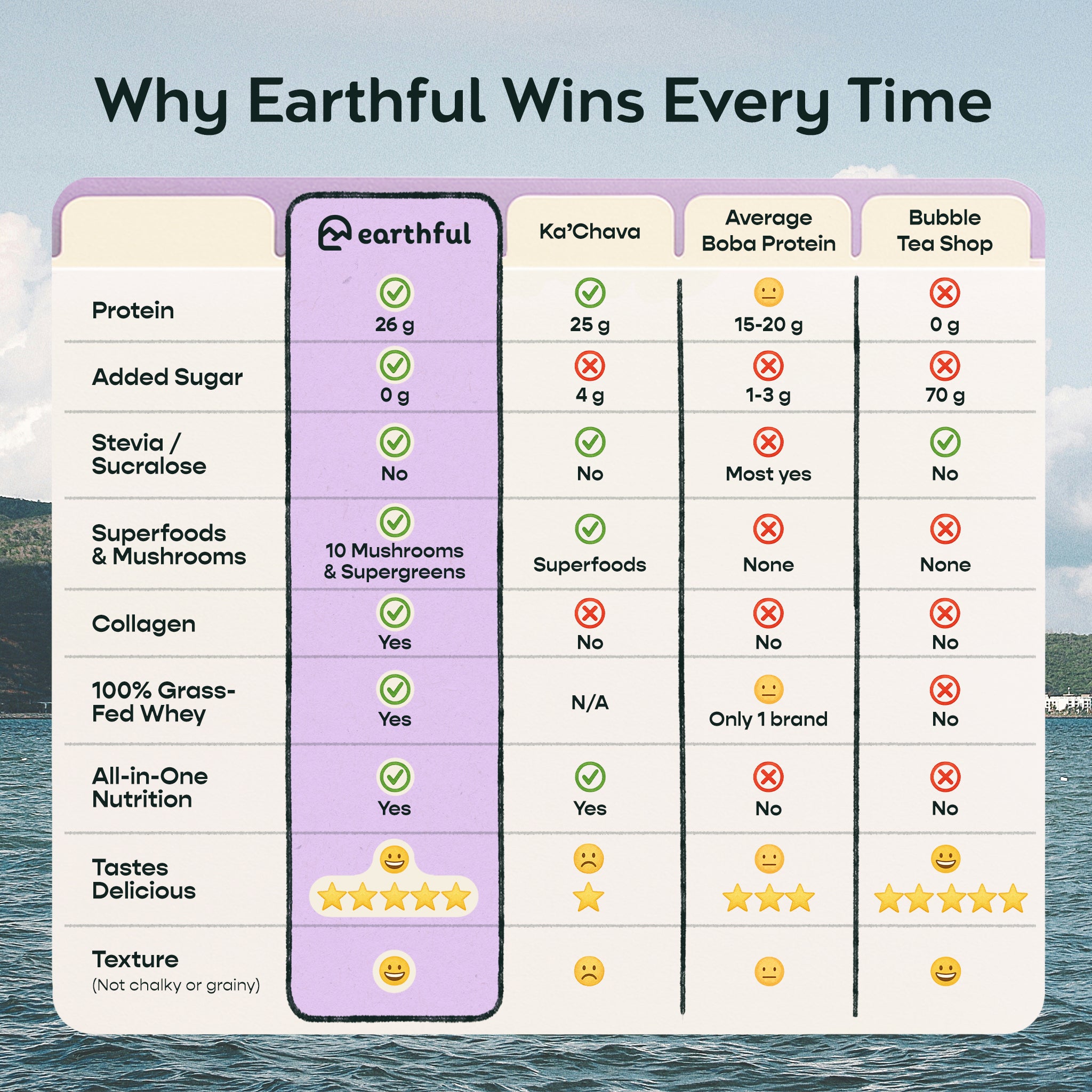 THE FIRST ALL-IN-ONE BOBA WHEY PROTEIN – Earthful is the world’s first boba-inspired whey protein powder, combining authentic bubble tea flavor with complete daily nutrition. Fuel energy, focus, and recovery in one creamy, indulgent shake.
